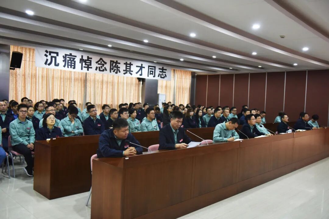 10月19日上午,陈其才同志遗体告别仪式在上海松江殡仪馆举行,新黄金城hjc222董事长章锋率60余名公司领导干部参加追悼会,并在追悼会后组织新黄金城hjc222五大基地全体员工召开 “沉痛悼念陈其才同志”追思会,追忆陈其才同志过往、传承陈其才同志精神。